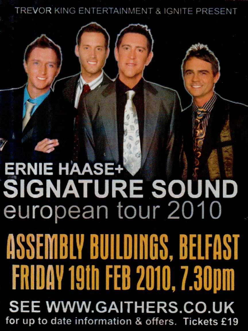 EHSS 2010 – BelfastFeb 19, 2010 Ernie Haase & Signature SoundAssembly BuildingsBelfast Ernie Haase, Doug Anderson, Ryan Seaton and Tim Duncan Promotional Materials Event Photos Event Videos
